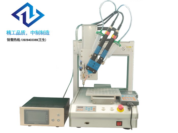 点胶机涂硅胶中毒的原因:使用硅胶时,需要硅胶的加成反应,即硅胶中硅氢键和桂乙烯基键发生加成反应,由于加成反应需要金属铂,当它们混合时会生成化合物。这种化合物属于不稳定物质!这种混合物质很容易受到某些物质的影响而改变化学结构或化合物的结构,此时,很容易失去硅氢和硅乙烯基键的催化活性而导致涂硅胶中毒的现象发生。