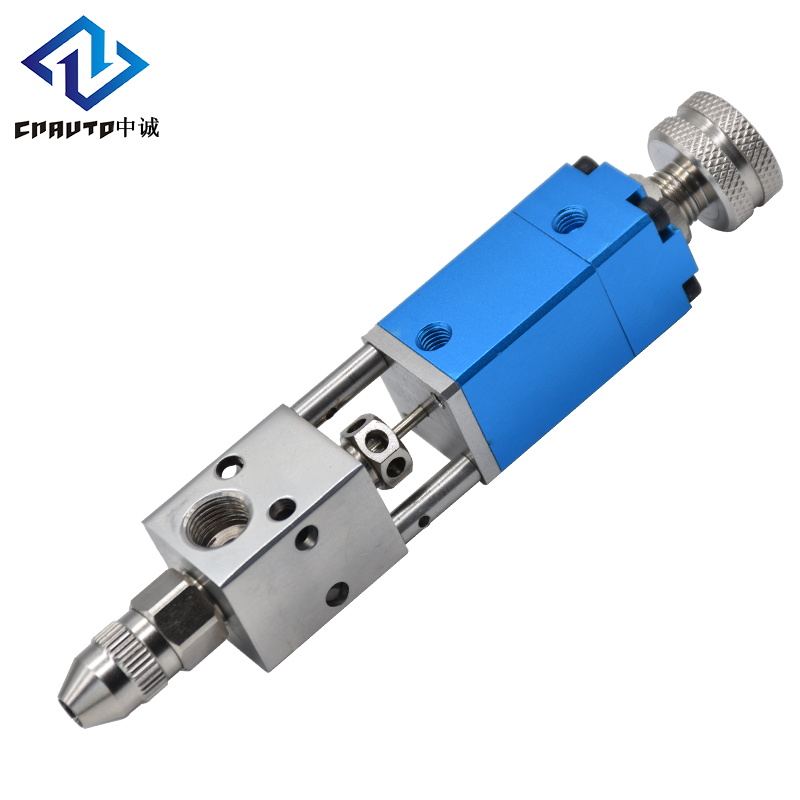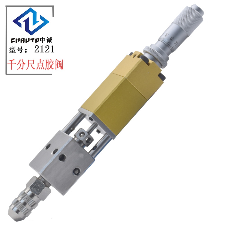 顶针式点胶阀是通过气压驱动顶针杆将胶水挤压出的一种控胶阀,中制制造的 2121点胶阀 属于一款可应用行业广泛性能作用好的控胶阀,加装在221点胶机或331点胶机等自动化设备上发挥出了自动控