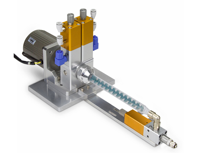 发泡胶点胶机的作用在于定量控制桶装发泡胶的流量涂覆至密封处填充,这与装配的 动态点胶阀 作用不容忽视,这款胶阀结构较为特殊可控制多种双组份配比胶料进行控制,包括桶装发泡胶的定量